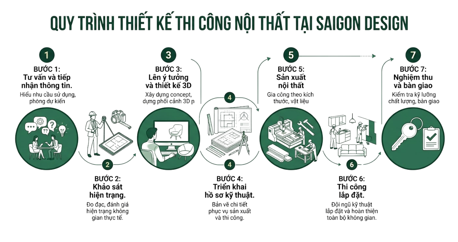 Một đơn vị nội thất chuyên nghiệp luôn có quy trình làm việc rõ ràng nhằm đảm bảo tiến độ và chất lượng công trình.