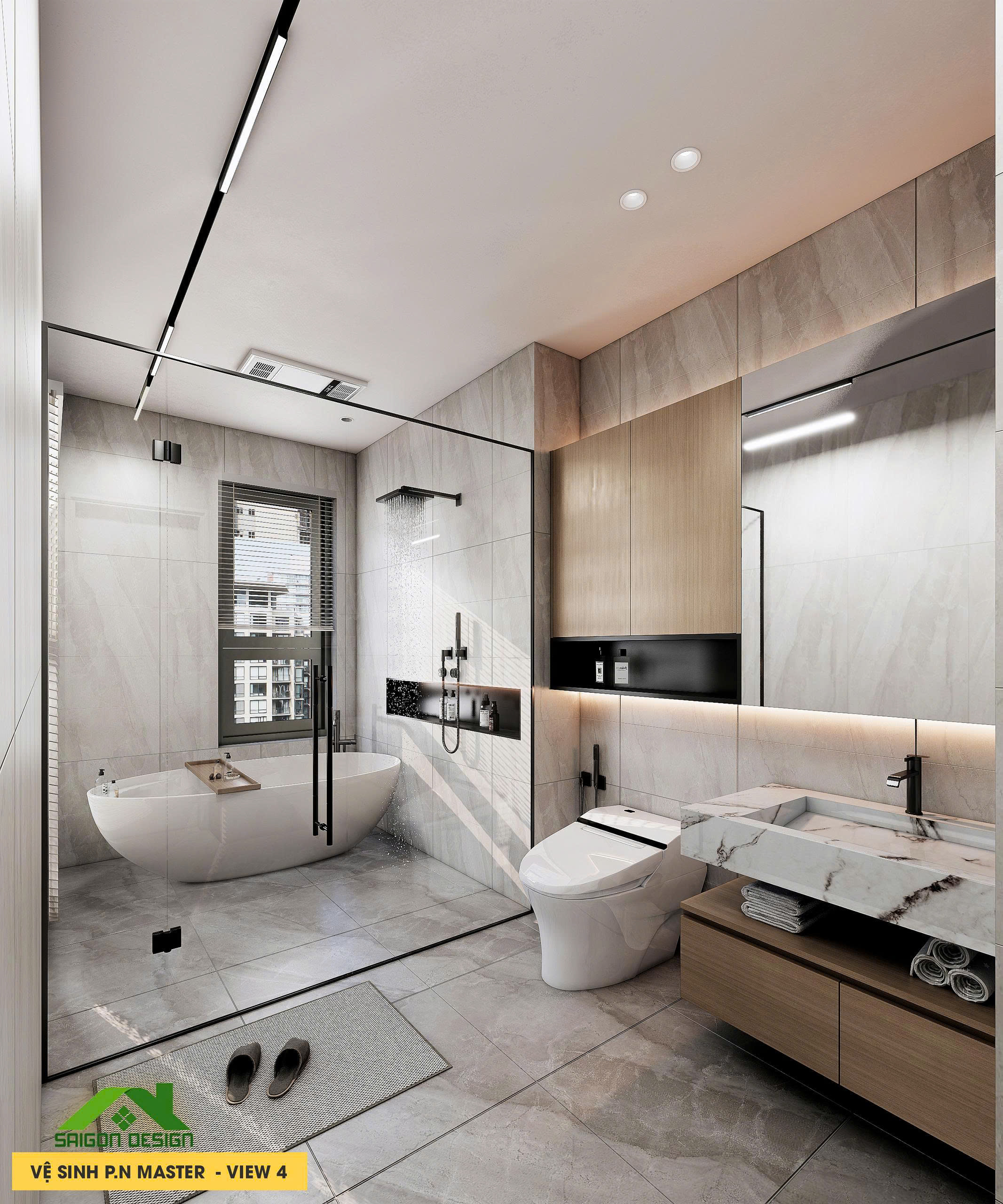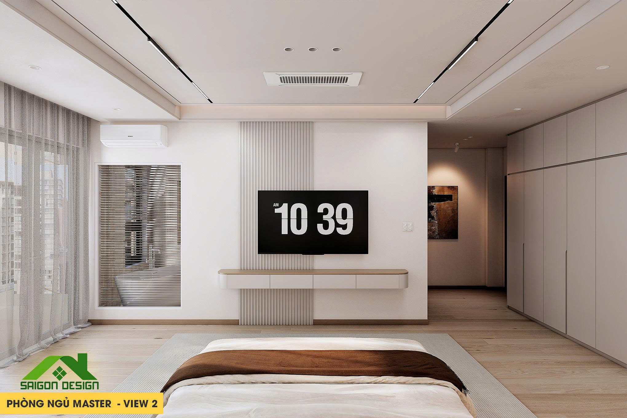 Dự án trung thành với phong cách Hiện đại, sử dụng bảng màu chủ đạo gồm Trắng và Gỗ. Sự kết hợp giữa sắc trắng tinh khôi và tông gỗ ấm áp tạo nên một tổng thể trang nhã, giúp không gian như rộng mở và nhẹ nhàng hơn.
