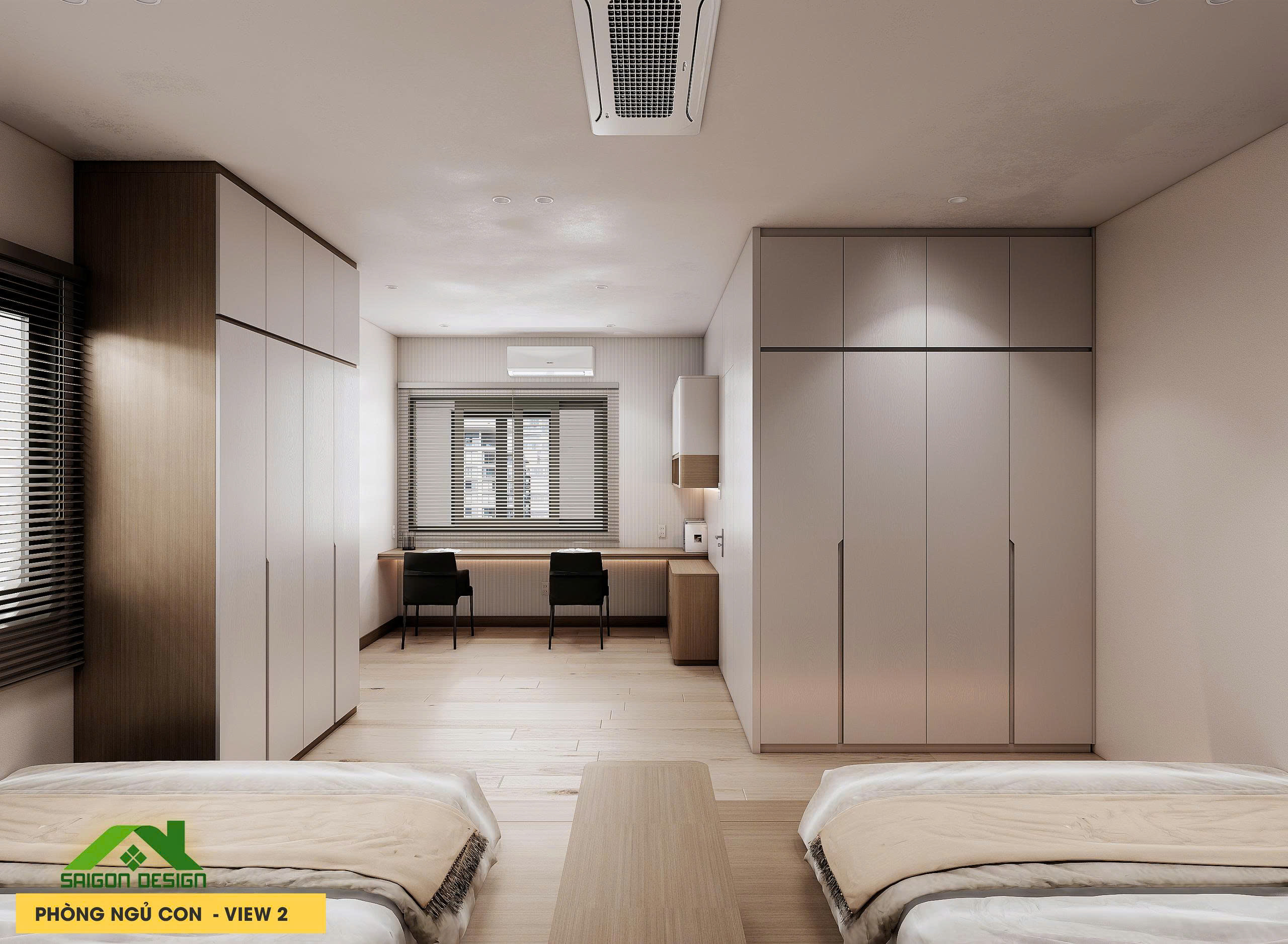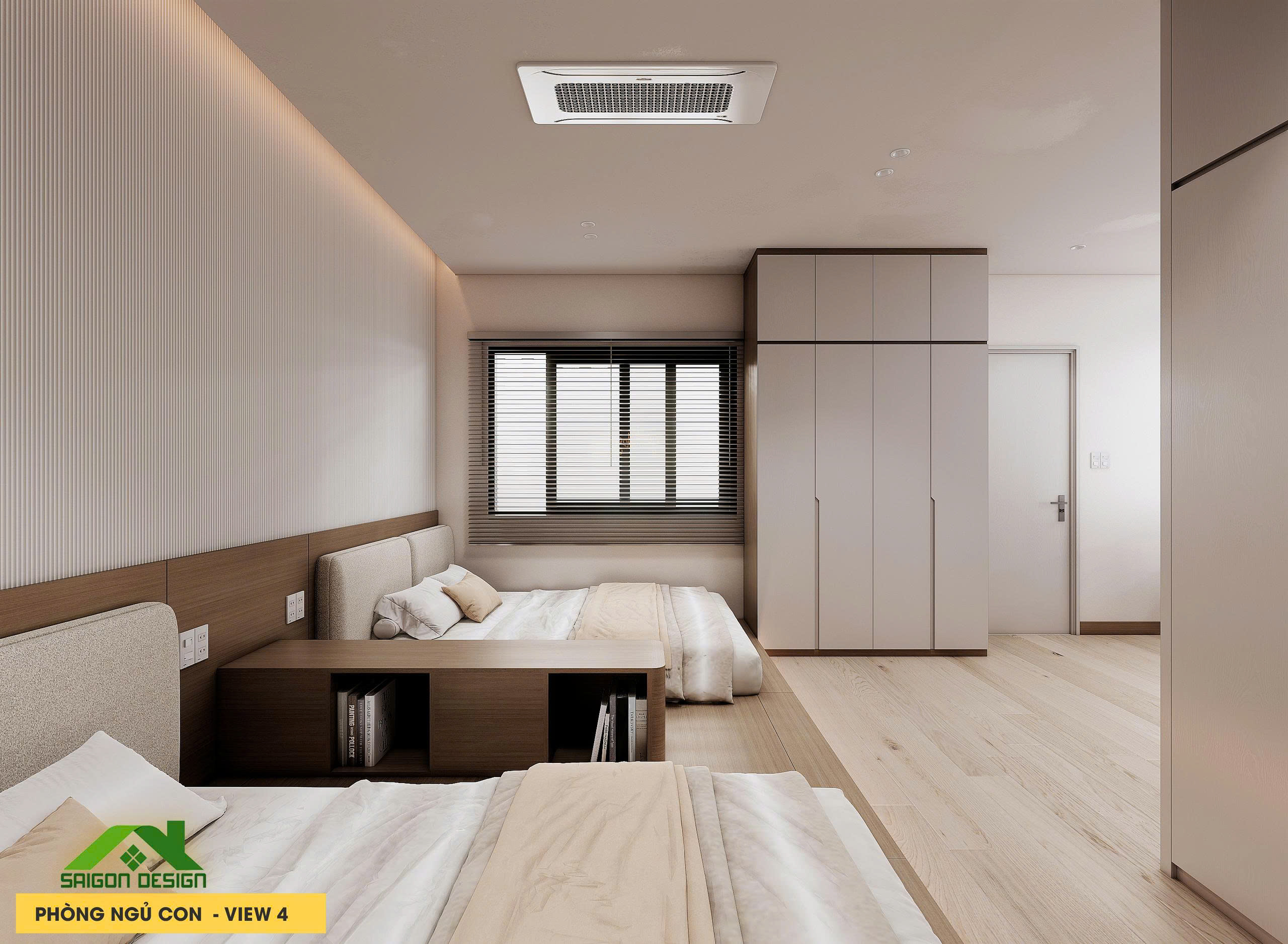Ý tưởng thiết kế của dự án xuất phát từ nhu cầu thực tế của một cặp vợ chồng trẻ có hai con nhỏ: mong muốn sở hữu một ngôi nhà vừa là nơi làm việc chuyên nghiệp, vừa là tổ ấm bình yên.
