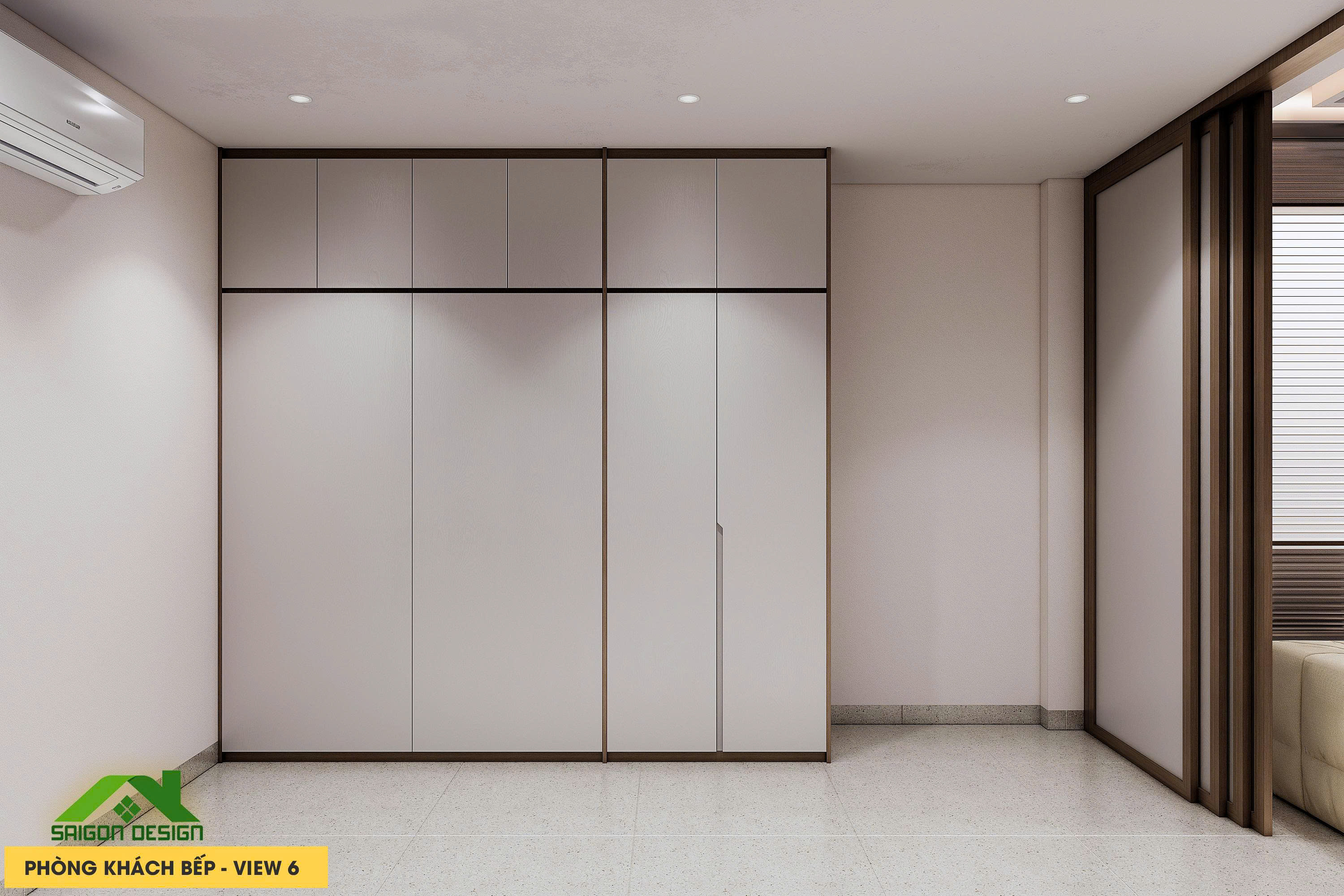Sự riêng tư được đẩy lên ưu tiên hàng đầu khi khu vực Khách – Bếp được đưa lên tầng cao nhất. Cách bố trí này không chỉ giúp gia đình có một không gian sinh hoạt khép kín, tránh xa sự ồn ào của phố thị hay dòng người ra vào văn phòng ở tầng dưới, mà còn mở ra tầm nhìn thoáng đãng, đón trọn ánh sáng và gió trời tự nhiên.