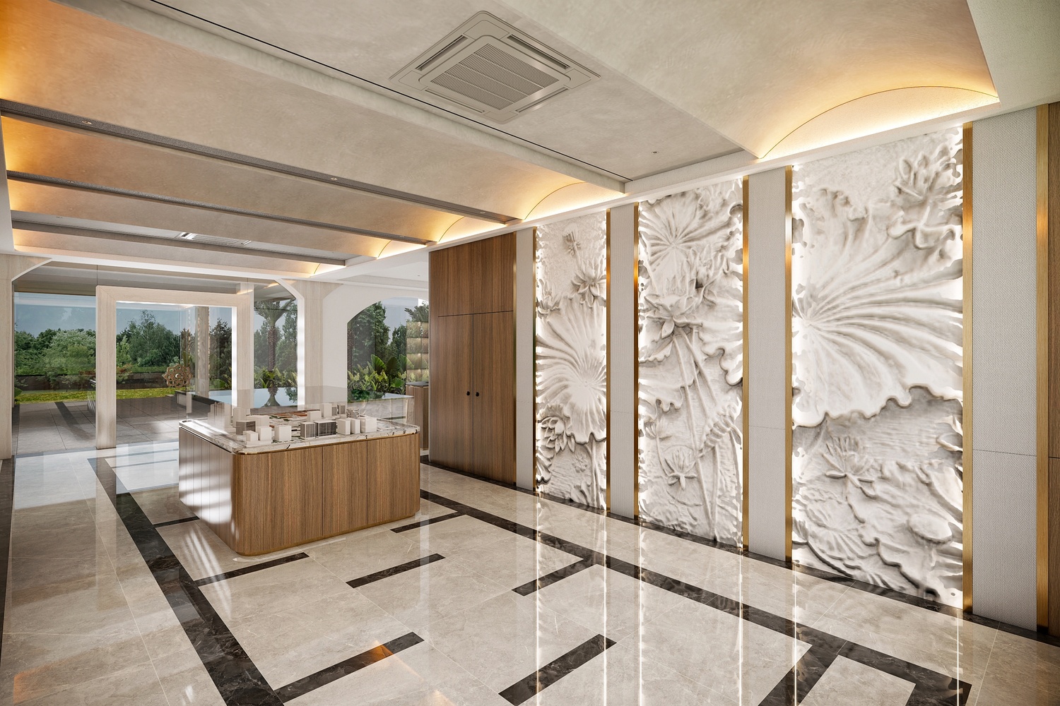 Không gian vì thế không chỉ được xây dựng, mà được “định hình” như một trải nghiệm – nơi con người có thể cảm nhận rõ ràng sự tĩnh tại và trang trọng trong từng bước di chuyển.