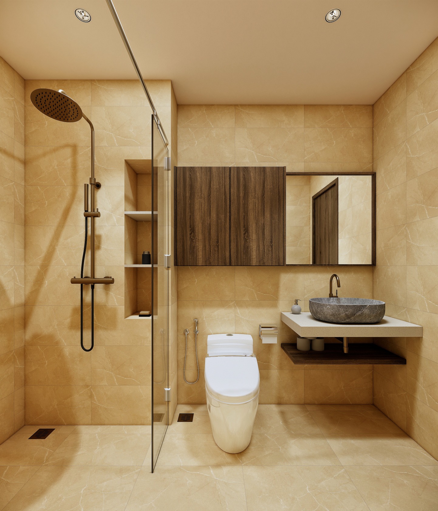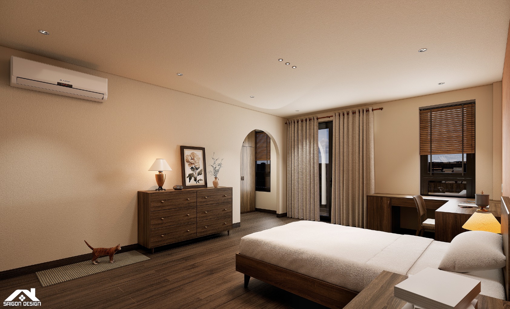 Sự kết hợp giữa hệ cửa kính lớn và các mảng vật liệu bền bỉ như gỗ, đá tạo nên một tổng thể kiến trúc vừa thanh thoát, vừa vững chãi. Đây không chỉ là một ngôi nhà phố hiện đại, mà là một không gian sống đầy năng lượng, nơi sự tiện nghi và nét sang trọng được dung hòa một cách khéo léo, đáp ứng trọn vẹn phong cách sống năng động của gia chủ.