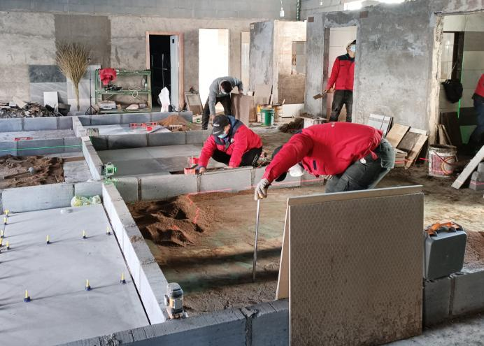 Việc thi công gạch khổ lớn yêu cầu kỹ thuật chính xác và kỹ lưỡng, nhằm đảm bảo độ bền đẹp và tính thẩm mỹ của công trình. Đầu tiên, việc chuẩn bị bề mặt phải đảm bảo phẳng, sạch sẽ, không có bụi bẩn hay dầu mỡ gây cản trở bám dính. Tiếp theo, các kỹ thuật viên cần chọn loại keo dán phù hợp, thường là keo dán gạch chuyên dụng với khả năng kết dính chắc chắn và đàn hồi cao để tránh nứt vỡ sau này.