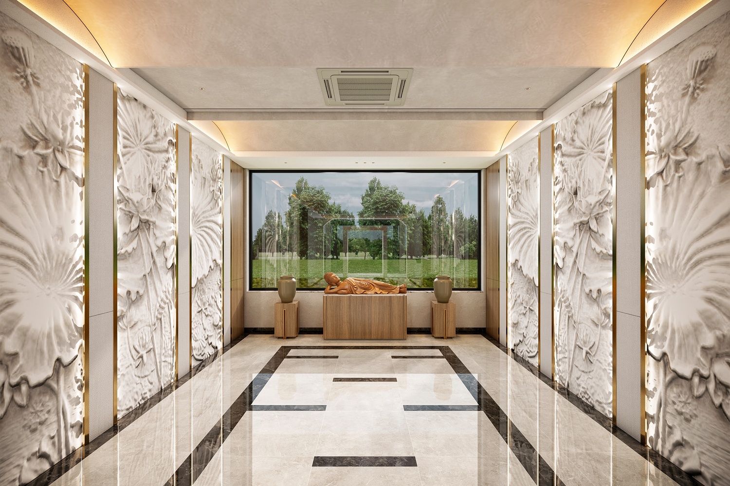 Không gian vì thế không chỉ được xây dựng, mà được “định hình” như một trải nghiệm – nơi con người có thể cảm nhận rõ ràng sự tĩnh tại và trang trọng trong từng bước di chuyển.