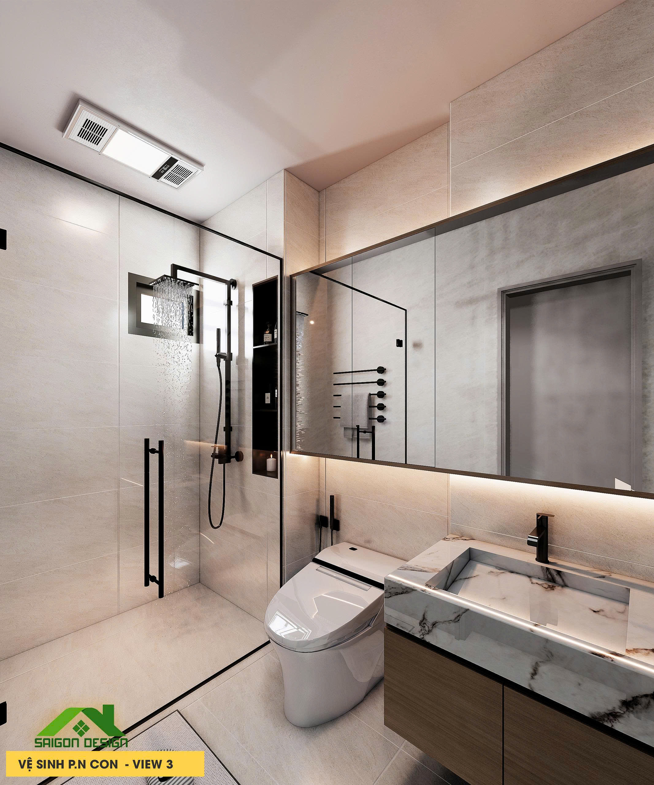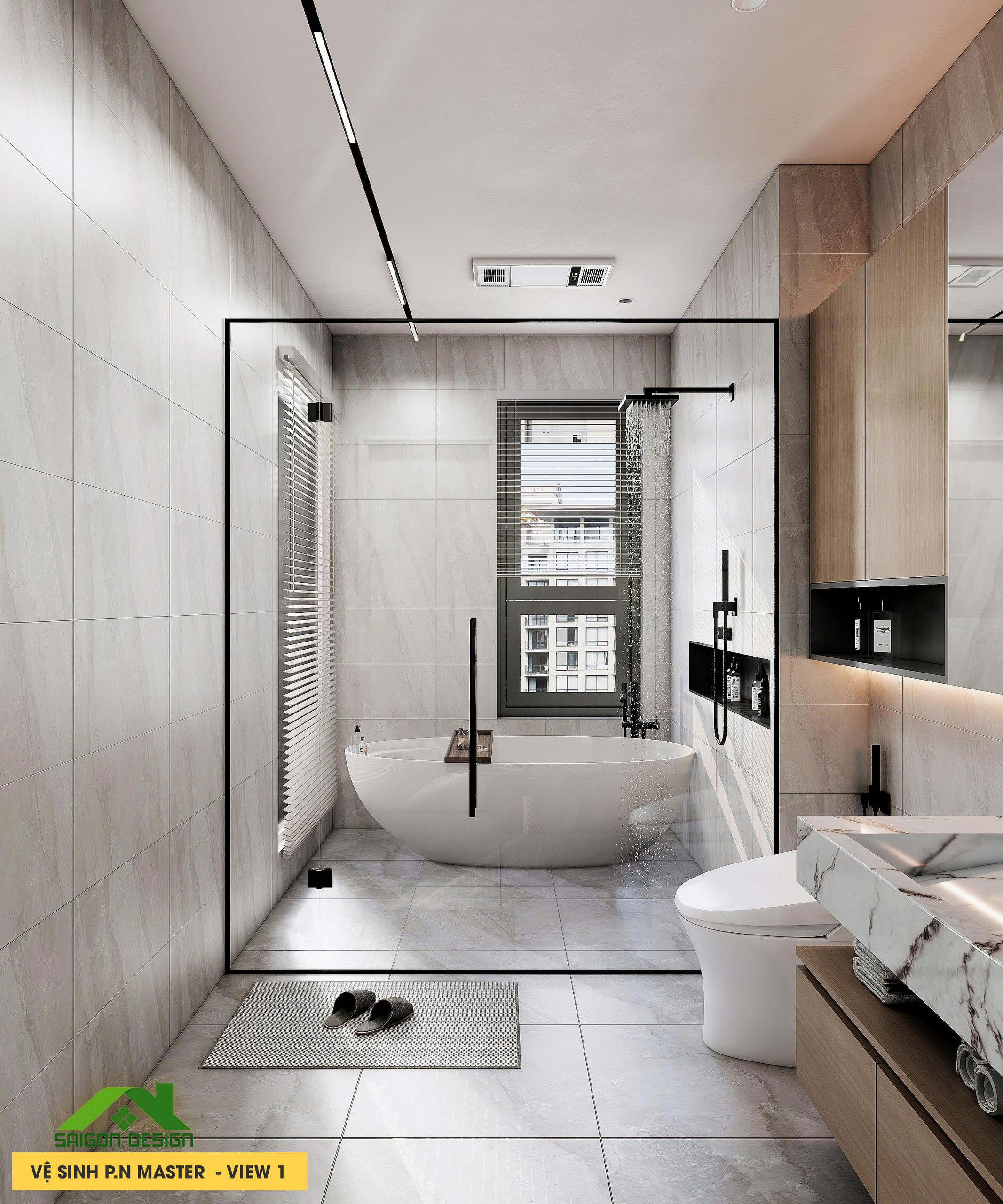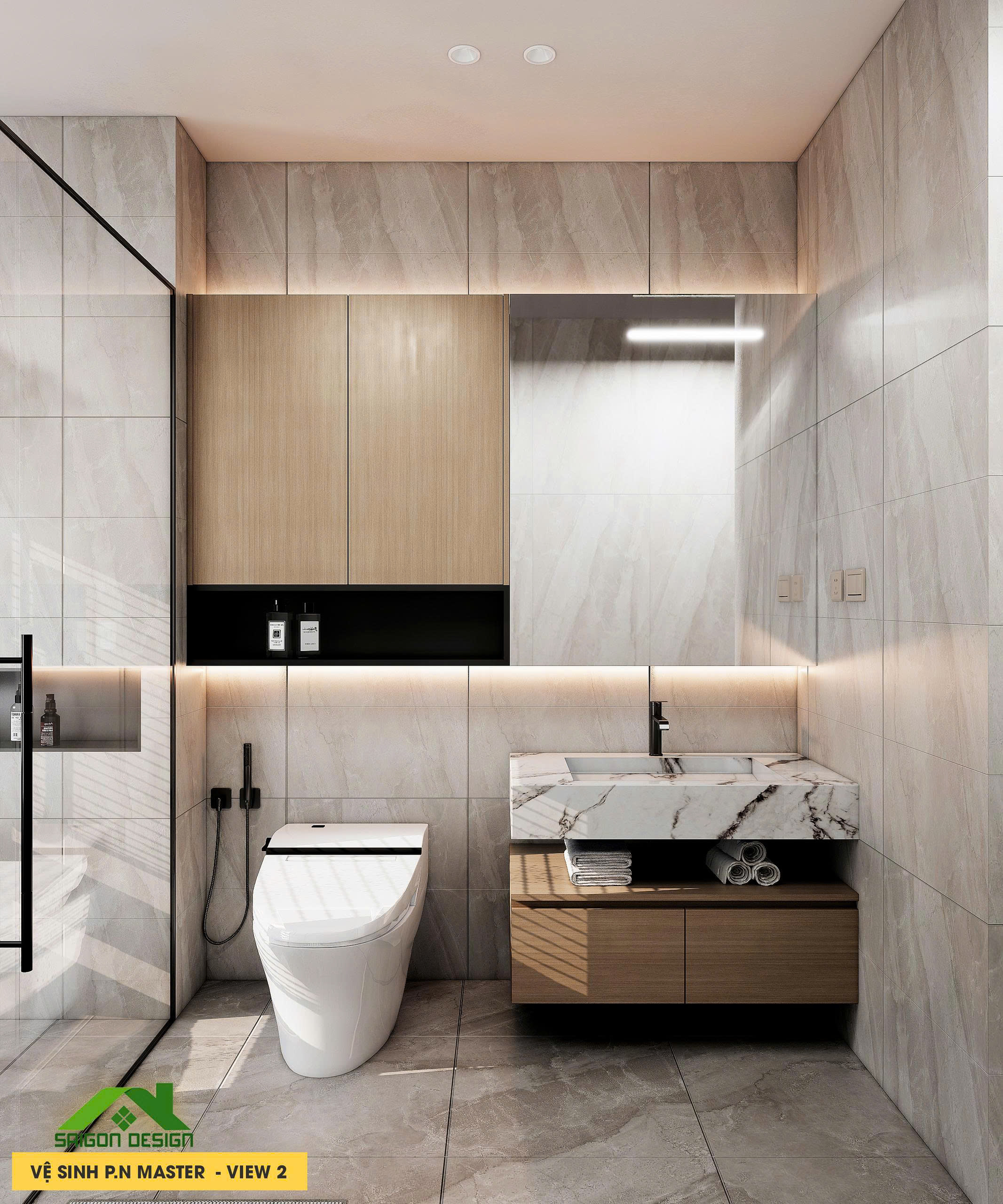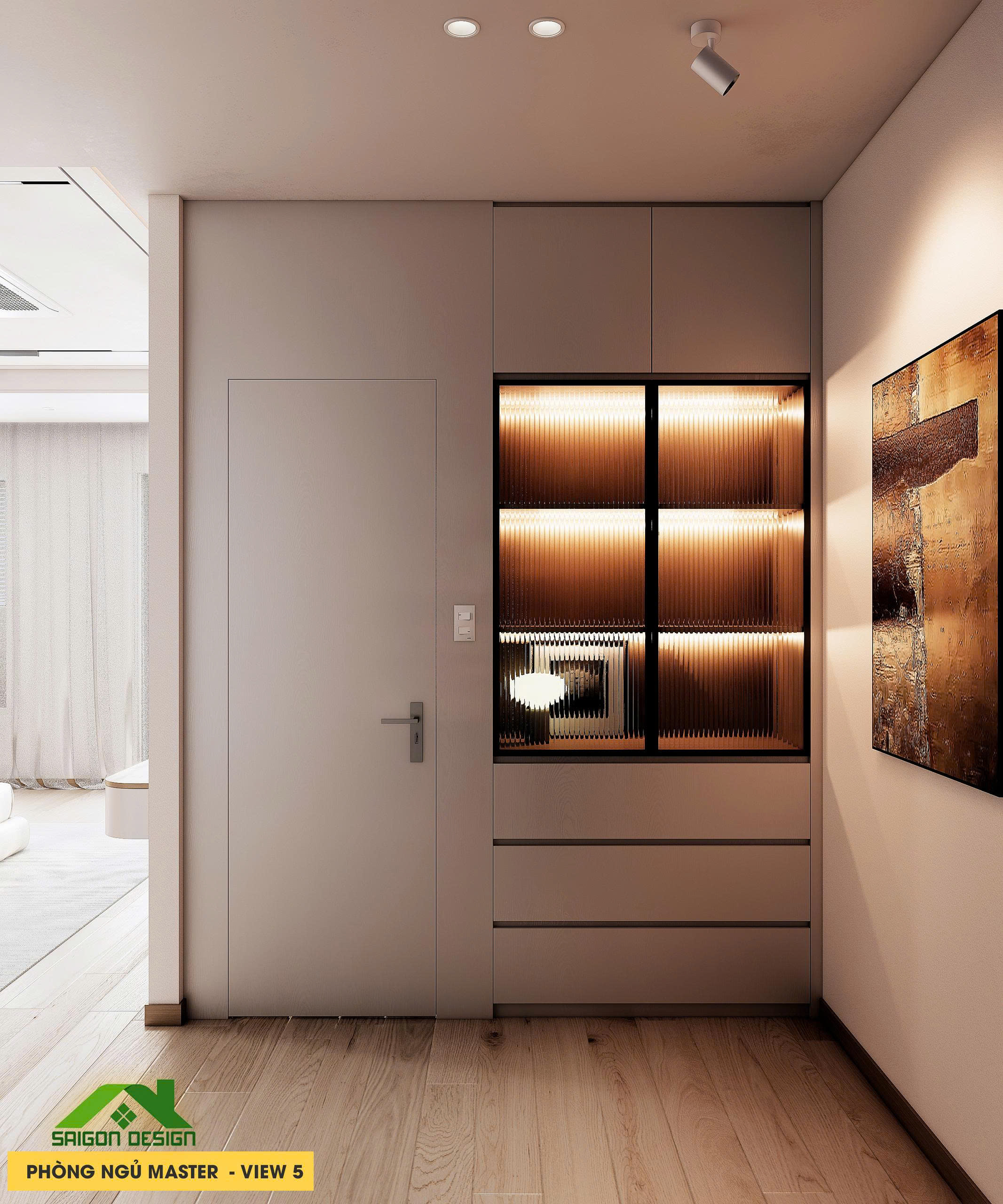 Dự án trung thành với phong cách Hiện đại, sử dụng bảng màu chủ đạo gồm Trắng và Gỗ. Sự kết hợp giữa sắc trắng tinh khôi và tông gỗ ấm áp tạo nên một tổng thể trang nhã, giúp không gian như rộng mở và nhẹ nhàng hơn.