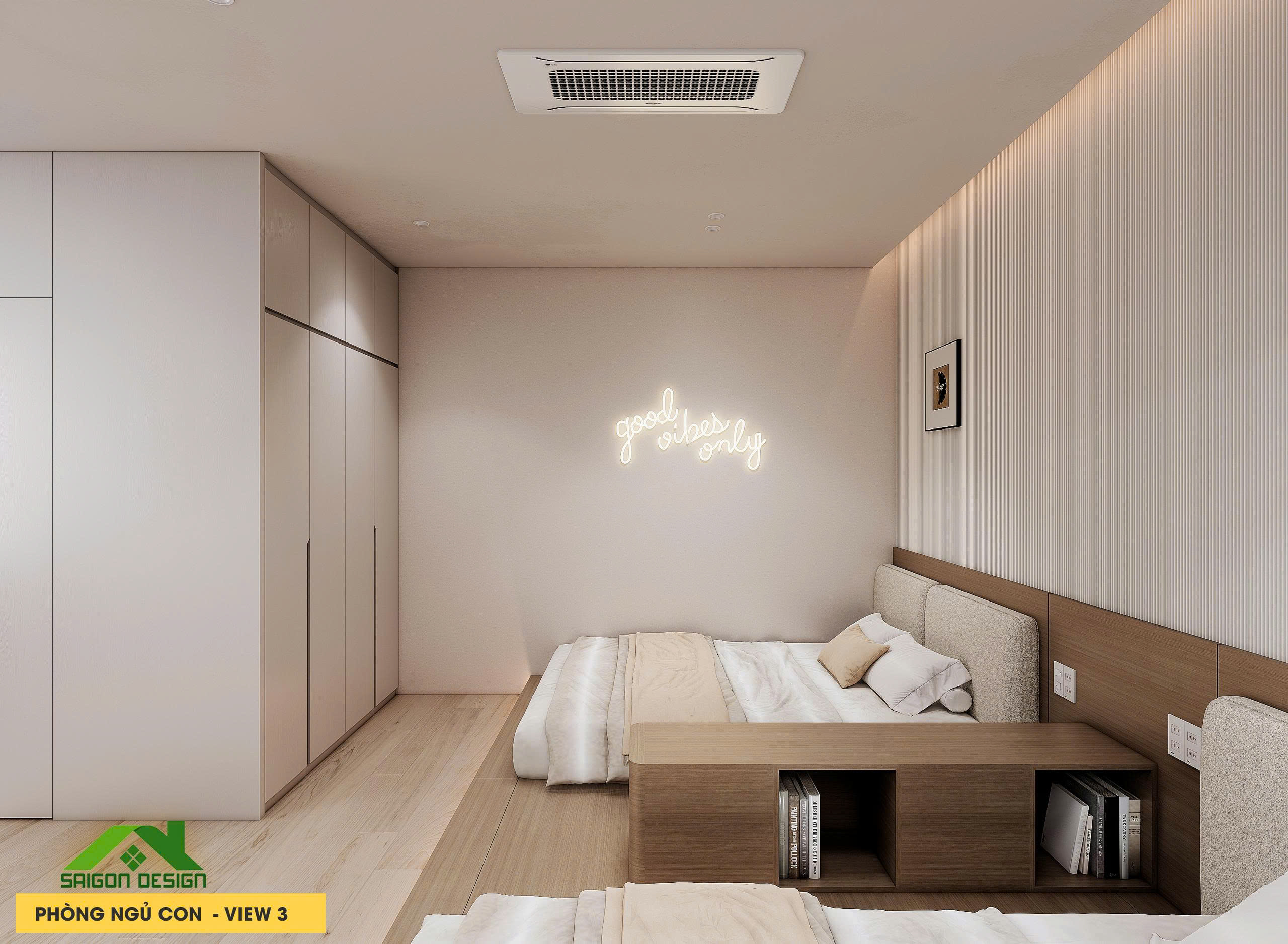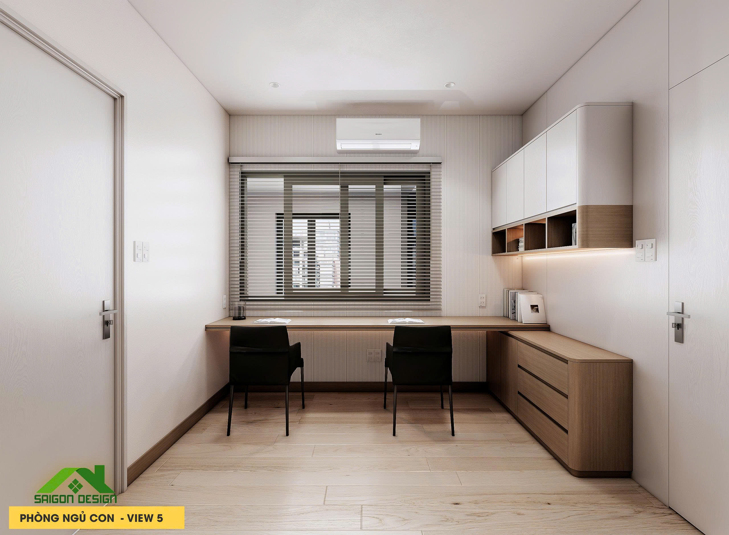 Ý tưởng thiết kế của dự án xuất phát từ nhu cầu thực tế của một cặp vợ chồng trẻ có hai con nhỏ: mong muốn sở hữu một ngôi nhà vừa là nơi làm việc chuyên nghiệp, vừa là tổ ấm bình yên.